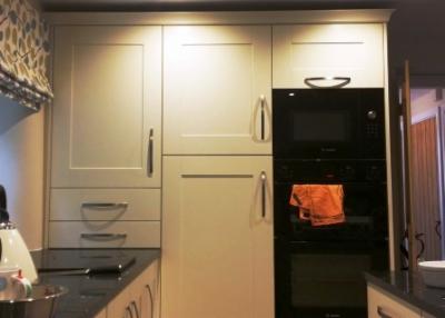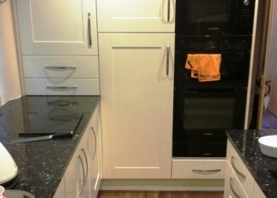 Tall units house the double oven and integrated microwave as | well as providing additional storage space. |