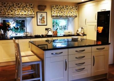 ![]() | Ivory painted oak shaker kitchen teamed with granite worktops and black appliances create a classic and timeless look. |