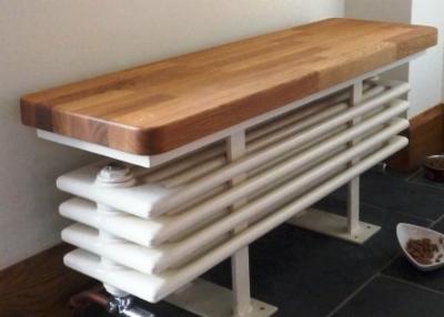 Bespoke radiator 'heated' seat topped with solid oak. | |