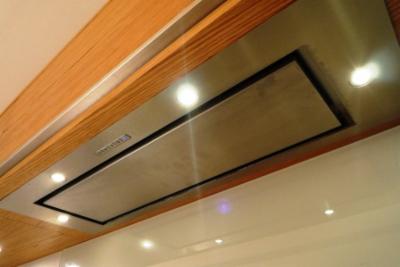 ![]() A sleek stainless steel extractor smoothly fits above the range cooker. A glass splahback is fitted behind the range cooker. | ![]() |