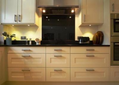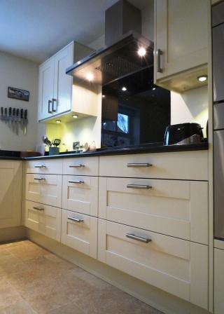 ![]() To maximise storage space, a bank of drawers was installed under the hob, allowing easy access to all cooking utensils. Under unit lighting provides an excellent task light whilst adding warmth to this simple colour scheme. | ![]() |