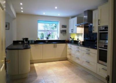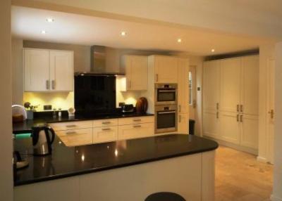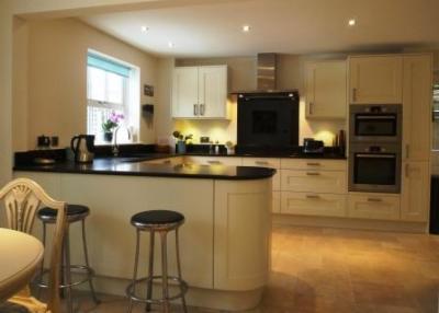 ![]() | Curved end units finish off the return run beautifully. The ivory painted oak shaker kitchen teamed with a black granite worktop creates a classic, timeless feel to this stunning new living space. |