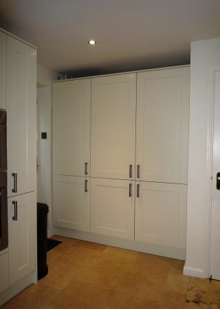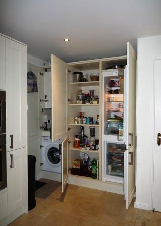 Custom built pantry maximises the use of space and also houses | the boiler, washer/dryer and the fridge/freezer. |